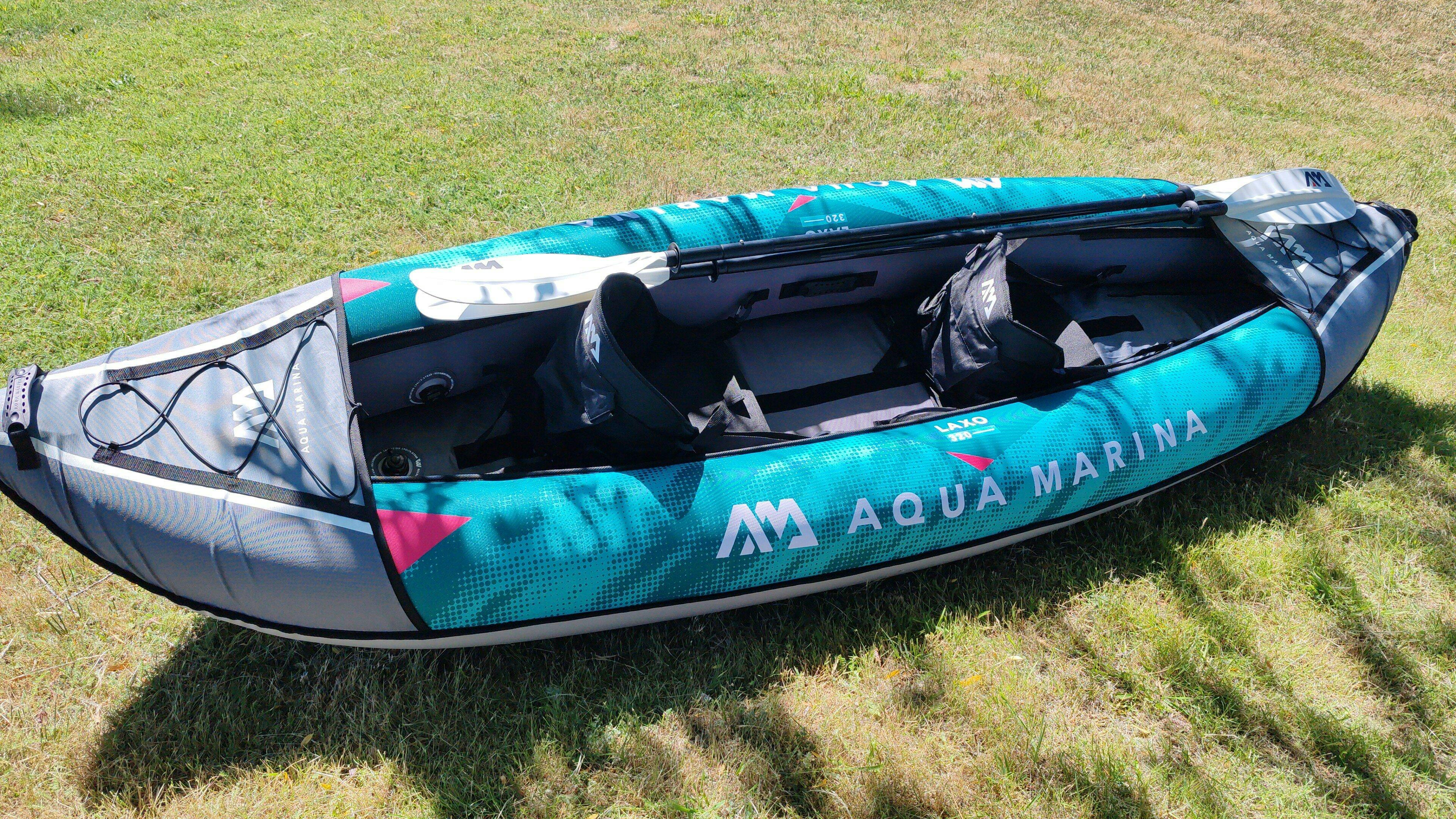 Con cubierta de poliéster ultra duradero y mucho espacio, el KAYAK LAXO by Aqua Marina es ideal tanto para principiantes como para remadores avanzados en ríos y lagos. La cubierta del piso y el casco superior de las cámaras laterales están fabricados con poliéster extra fuerte para una gran durabilidad y rigidez.