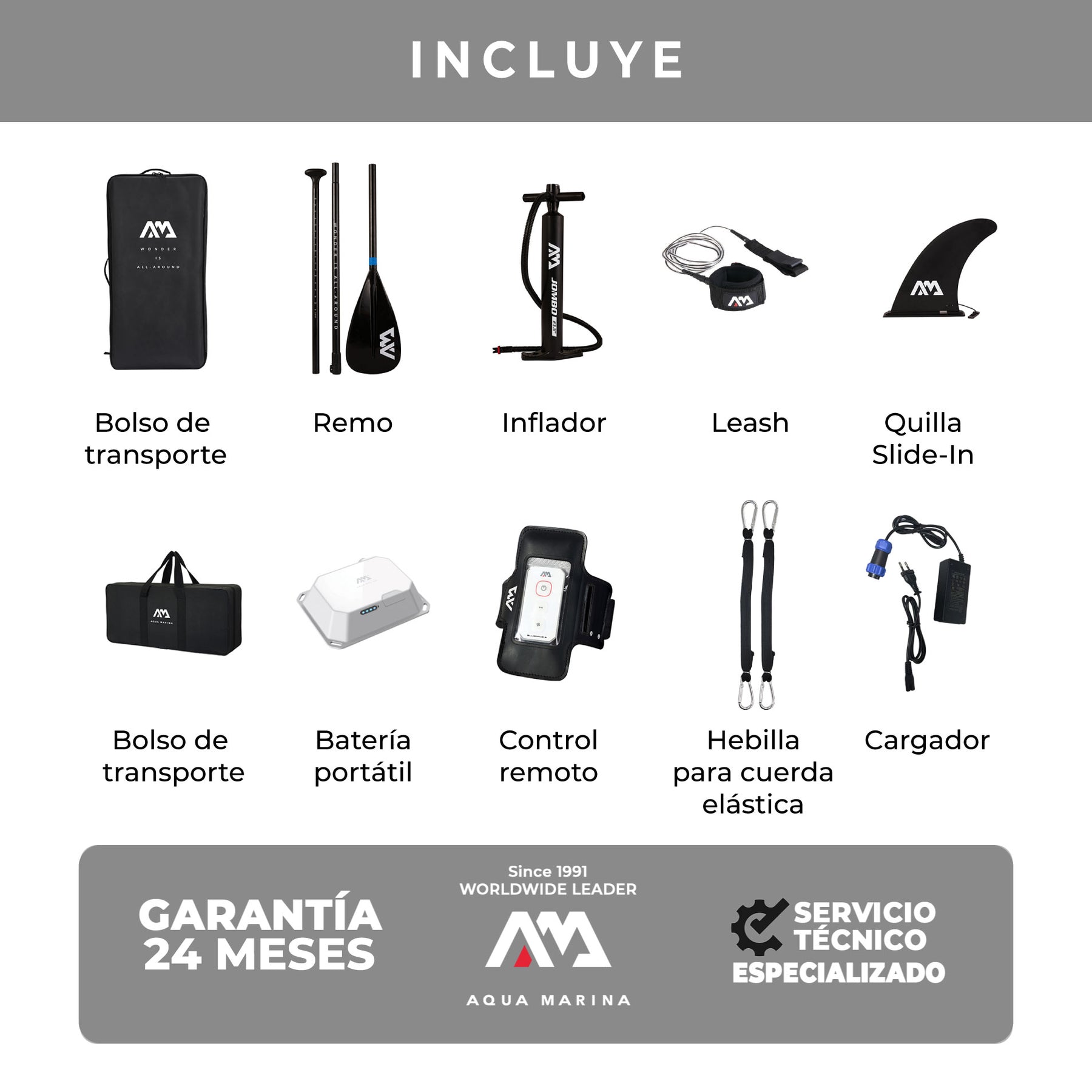 Te presentamos la Tabla de Stand Up Paddle AMGo con Motor Turbo by Aqua Marina, diseñada para llevar tu experiencia en el agua al siguiente nivel. Gracias a su quilla turbo y al sistema de propulsión eléctrica BLUEDRIVE S, podrás recorrer distancias más largas con menos esfuerzo, disfrutar de mayor estabilidad y vivir aventuras más cómodas, ya sea solo o acompañado.