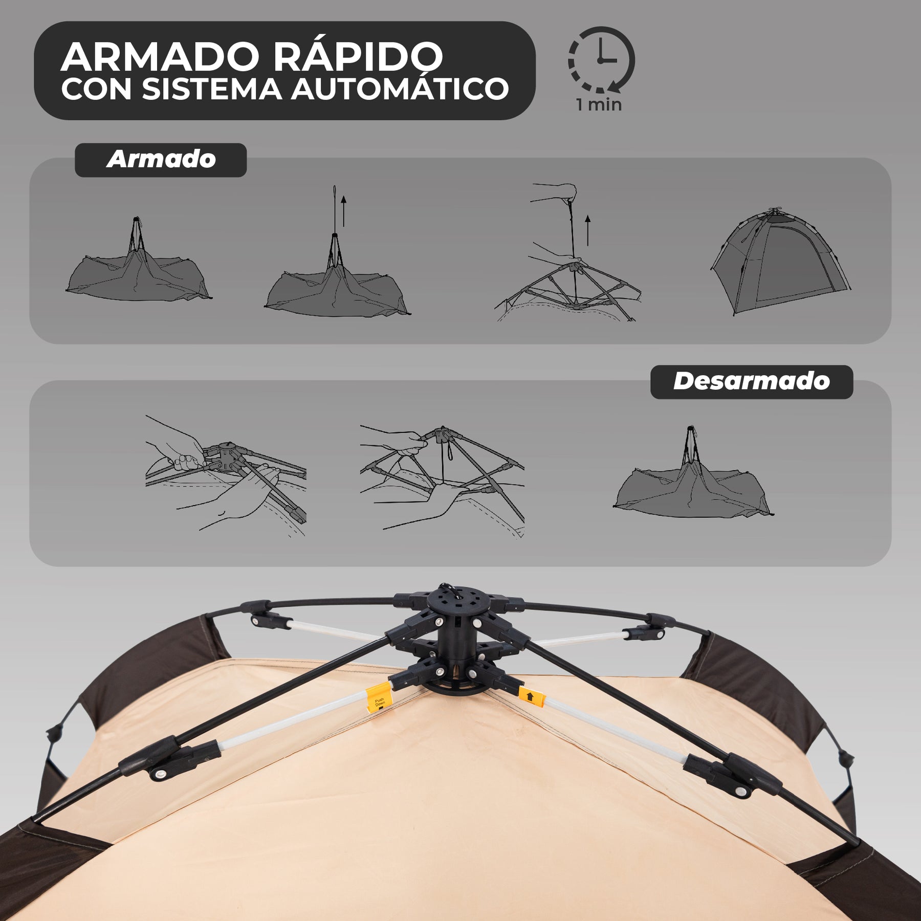 Sistema automático: se arma en cuestión de segundos, sin esfuerzo ni complicaciones.