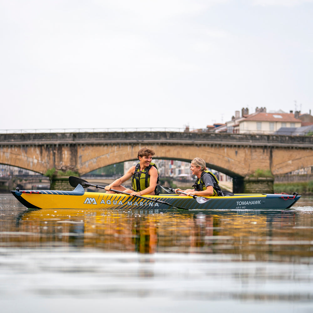 En Kano, somos los vendedores exclusivos y oficiales de la reconocida marca Aqua Marina. Te presentamos nuestros increíbles kayaks inflables, diseñados para brindarte una experiencia única en el agua. Ya sea que prefieras remar solo o en compañía, nuestros kayaks están disponibles en modelos simples o dobles, adaptándose a tus necesidades.