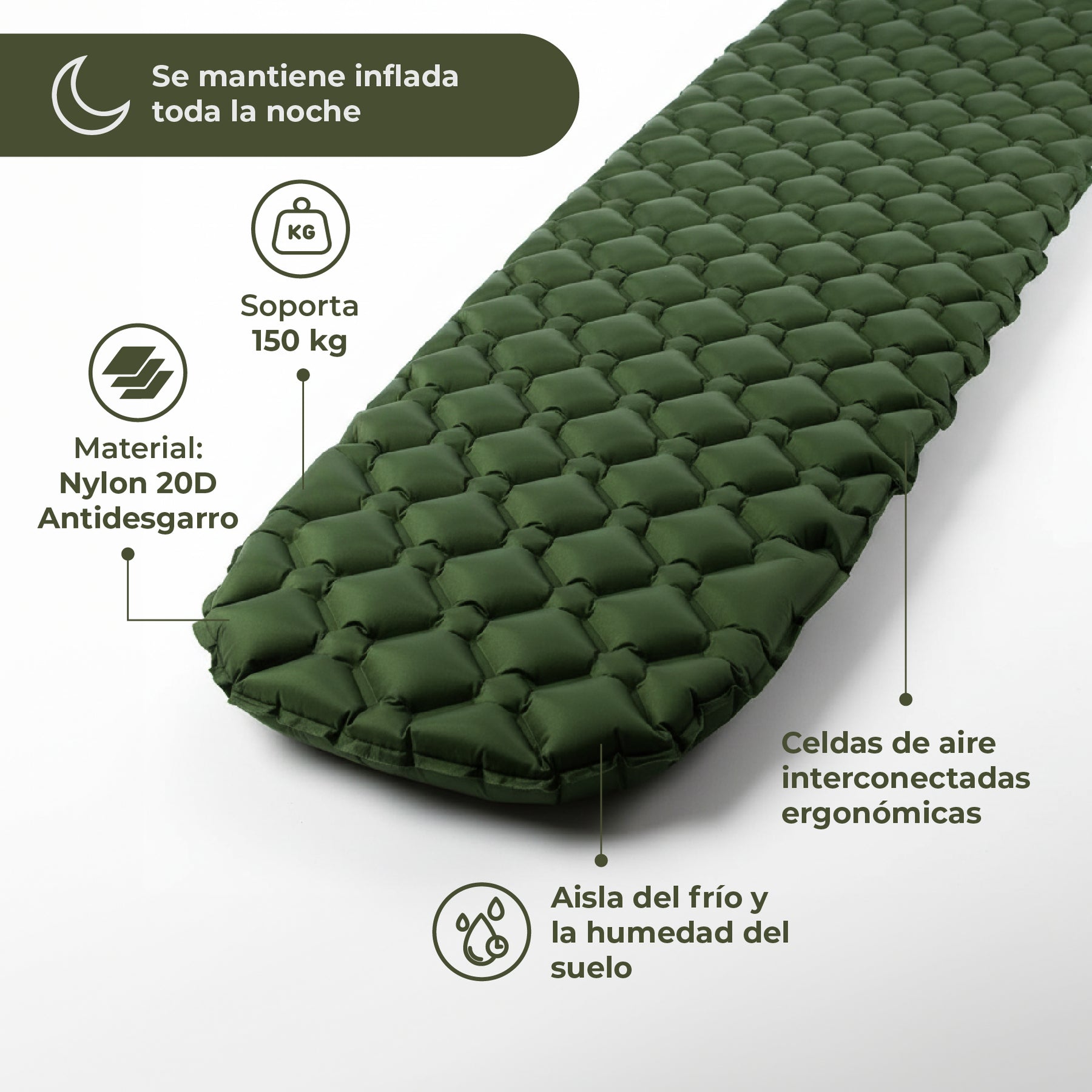 El objetivo de comprar esta colchoneta, fue por la expedición al Aconcagua. Específicamente llamó mi atencion el disminuido peso y volumen, considerando que No es una colchoneta técnica. Apostaba que al menos durara solo este viaje, y soportará la altitud. Y así fue, respondió muy bien a las distintas variaciones de suelo (también use una colchoneta aislante). Y aún sigue disponible para seguir usando! 😊. Una gran compra!. Y soporto los 6000! 🥳