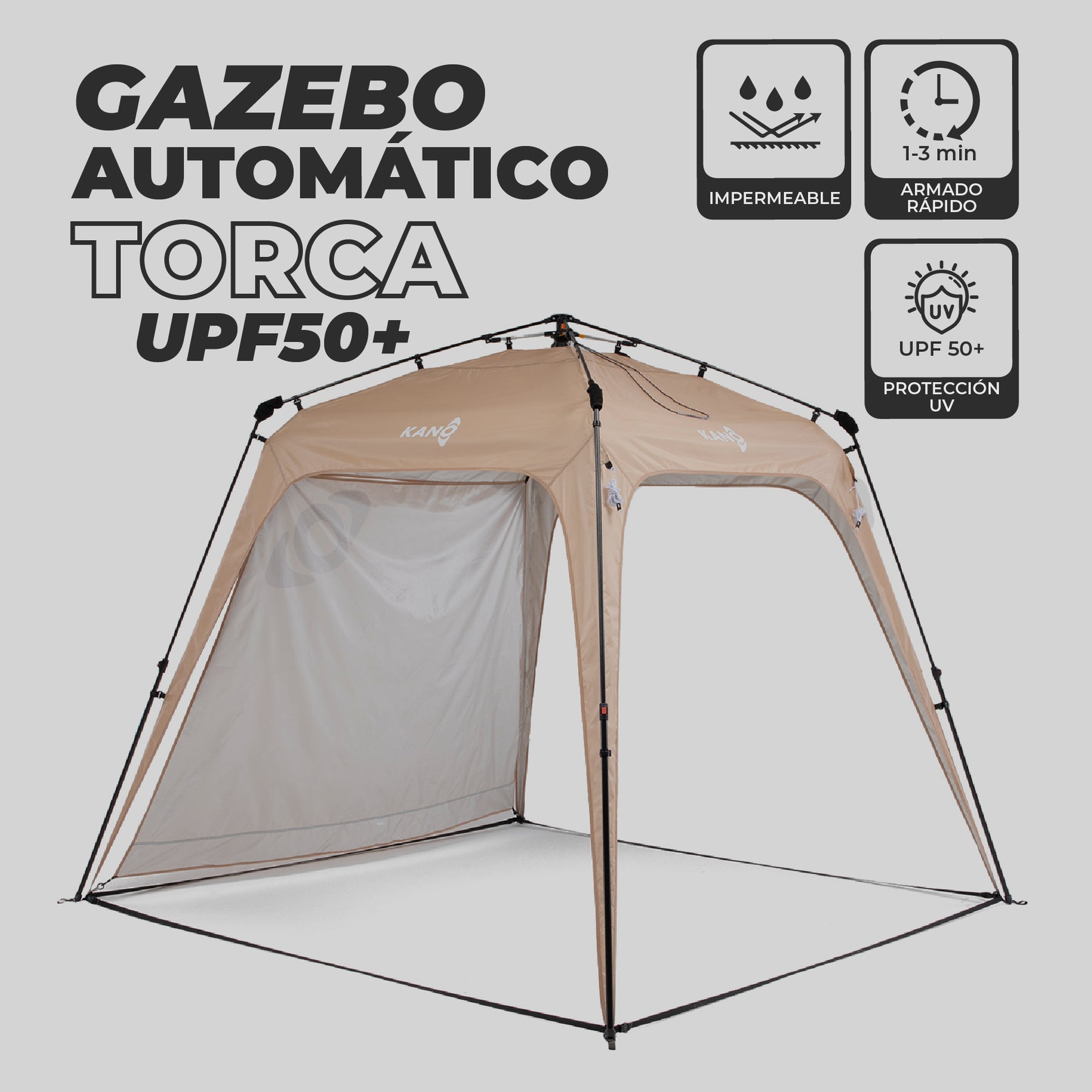 Conocé el Gazebo Automático Torca by Kano. Con este gazebo podrás tener sombra en sólo segundos. Cuenta con un sistema de montaje instantáneo que te ayuda a armar el gazebo de manera fácil y rápida.